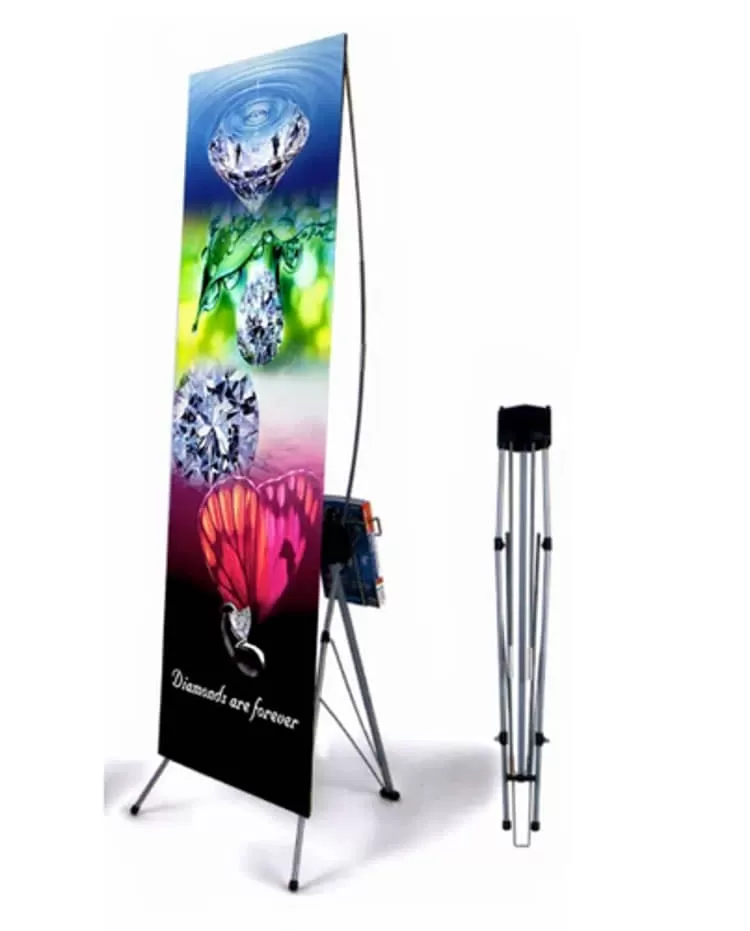 - Suitable for indoor environments, this banner stand serves as an effective and reusable signage tool for promotional and directional purposes.